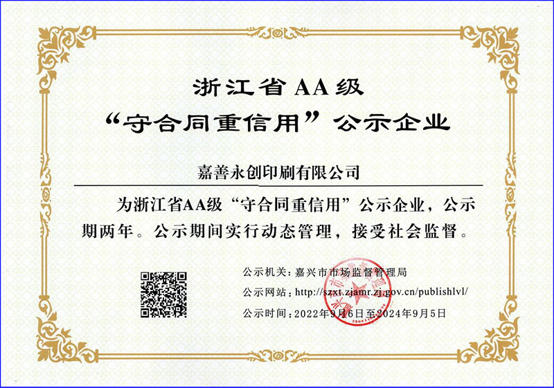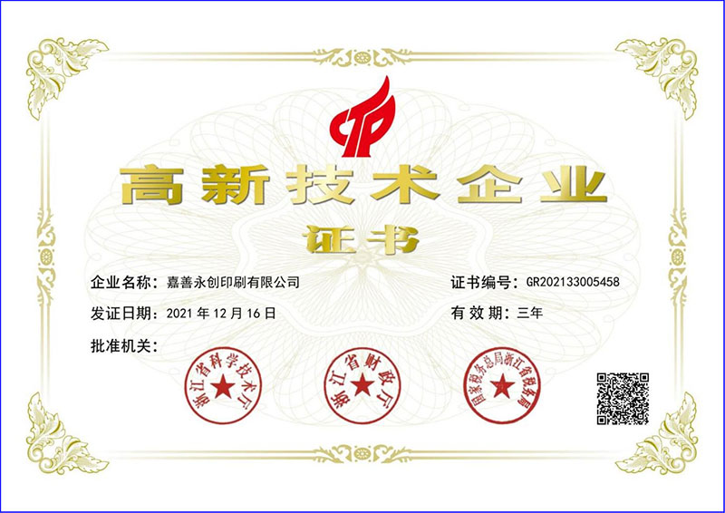 嘉善永創印刷有限公司成立于2002年8月,是嘉興印刷行業協會理事單位、嘉善印刷行業協會副會長單位。2011-2023年度嘉善縣行政事業單位定點印刷企業;2018-2023年度嘉興市(含五縣四區)行政事業單位定點印刷企業;2017-2023年度中國電信股份有限公司嘉興分公司日常業務宣傳印刷品采購定點單位;2017年度被評為全縣“專精特新企業”,“國家高新技術企業”。