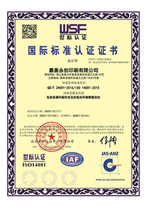 公司已通過ISO9001質量體系認證、ISO14001環境管理體系認證、ISO45001生產安全體系認證。